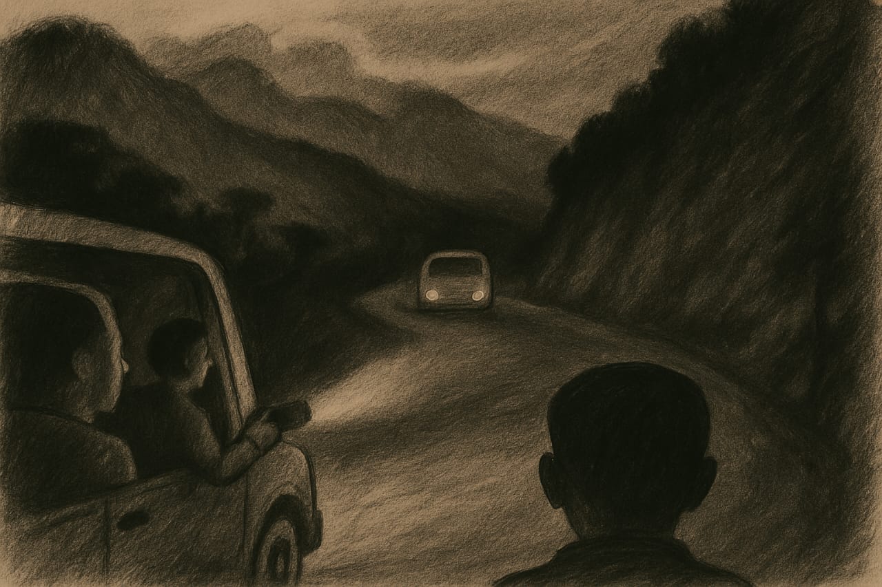 প্রায় দুই থেকে তিন ঘণ্টা আমরা পাহাড়ি রাস্তায় চললাম লাইট ছাড়া, মোবাইলের আলোয়। ঝাঁকুনি, ঢাল, বাঁক—সবকিছু যেন জীবন-মৃত্যুর খেলার মতো মনে হচ্ছিল। গাড়ির গতি মাঝে মাঝে বেড়ে যাচ্ছিল, ভয় আরও বাড়ছিল। আমি চুপচাপ বসে শুধু ভাবছিলাম—আল্লাহ, মা-বাবার মুখটা আর একবার দেখতে পারব তো?