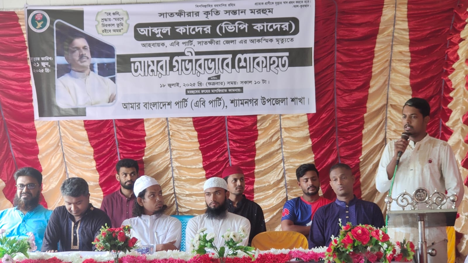 আমার বাংলাদেশ পার্টি (এবি পার্টি) শ্যামনগর উপজেলা শাখার উদ্যোগে সাতক্ষীরা জেলা আহ্বায়ক মরহুম আব্দুল কাদের (ভিপি কাদের) এর ইন্তেকালের পর দোয়া ও মিলাদ মাহফিল অনুষ্ঠিত হয়েছে। শনিবার সকালে শ্যামনগর সদরের একটি মিলনায়তনে এই অনুষ্ঠানের আয়োজন করা হয়।