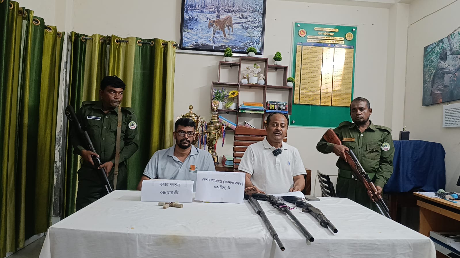 সুন্দরবনে টহল চলাকালে ডাকাত সন্দেহে গুলিবর্ষণ, অস্ত্র উদ্ধার।